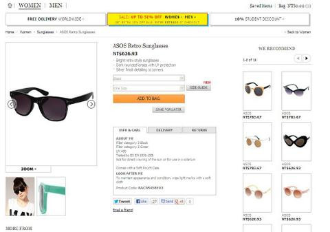 找了好姐妹一起選購,我們選的是這支,但是遍尋不到網友對於ASOS自有品牌太陽眼鏡的評價