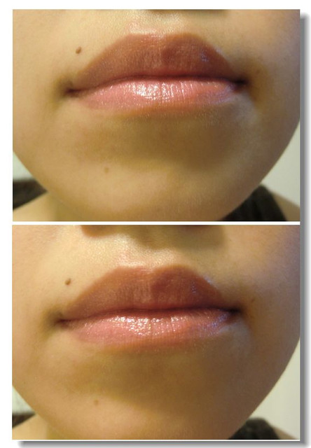顯色度中,但因為是偏濕潤帶點唇蜜效果的唇膏,相對比較薄透,不要對顯色抱持太大期望