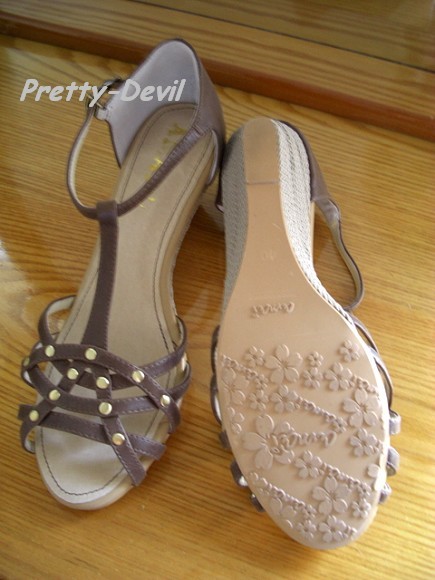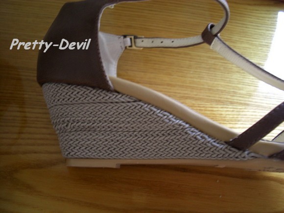 後跟鞋底是有做立體編織花紋的,不是廉價塑膠跟款,也不是木質紋跟,個人覺得楔型鞋要在鞋跟上做點心思