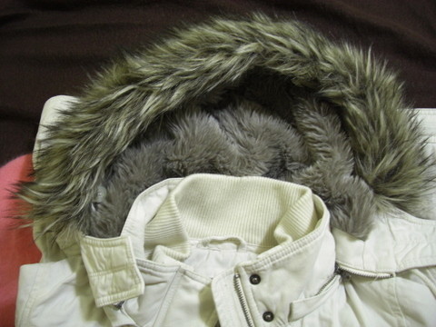 還有一款內裡也鋪熊熊毛,帽子也是,但是帽緣毛邊比較刺,穿起來很保暖,可是好胖啊!!!!