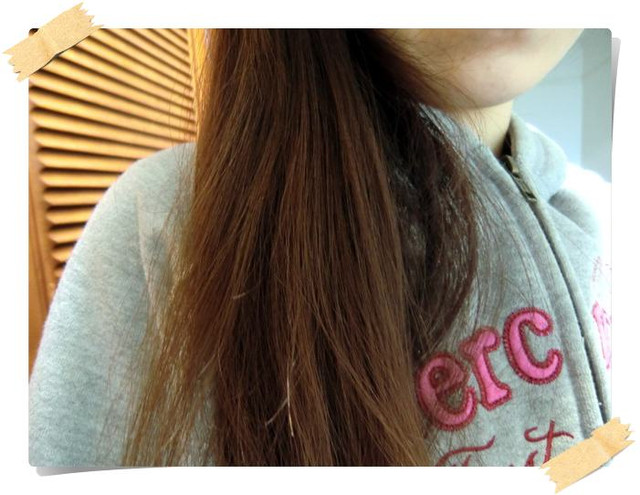 我的頭髮之前燙過,大概髮尾1/3的長度之前燙捲過...染髮一年大約3-4次,本身喜歡柔軟蓬鬆的頭髮質感...